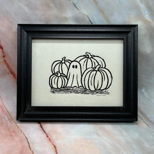 Pumpkin Patch Ghost Lino Print | 8 x 10 inch Frame
