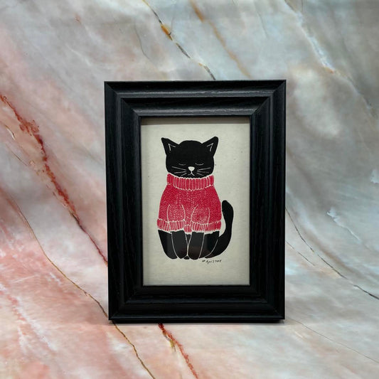 Cat Lino Print | 6 x 8 inch Frame | 2 Colours