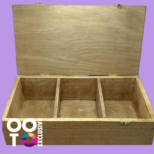Wooden Storage Box with Hinged Lid | 3 Compartments