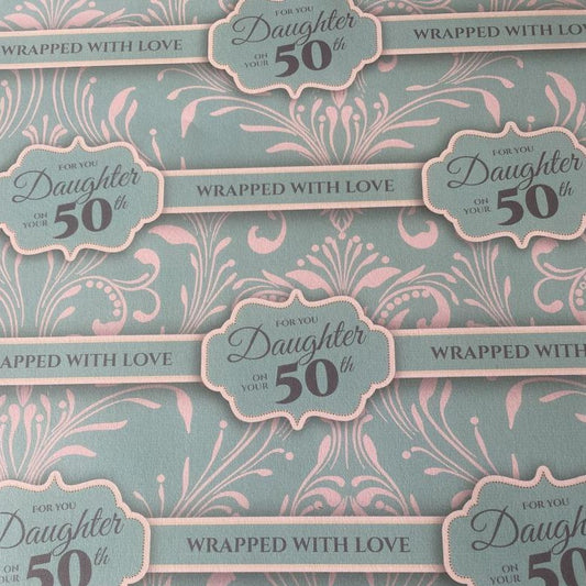 Daughter 50th | Gift Wrapping Paper | 500mm x 700mm | Matching Tag