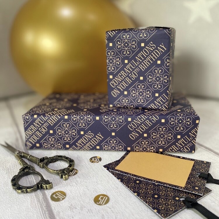 On your 50th Birthday | Gift Wrapping Paper | 500mm x 700mm | Matching Tag
