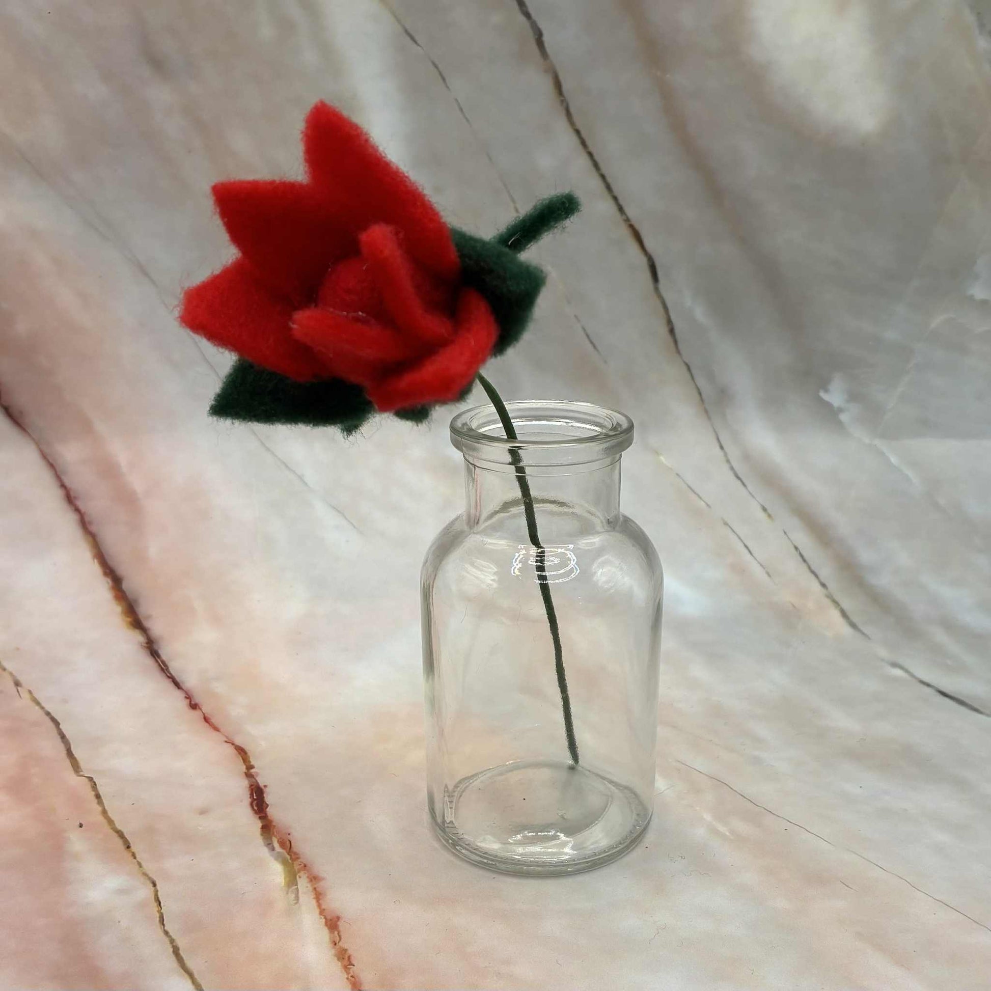 Single Red Rose ~ approx. 7 inches in height & Vase base diameter 2 inches.