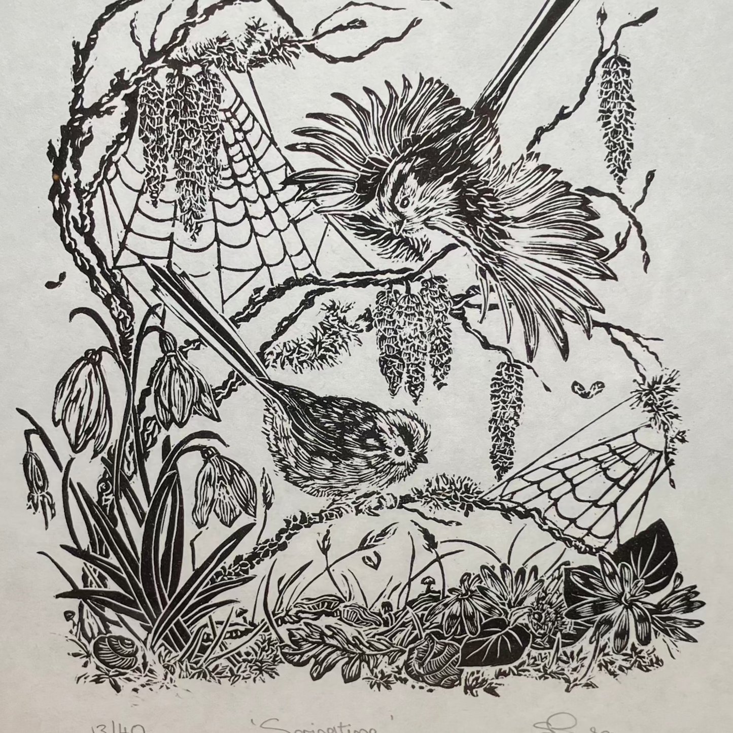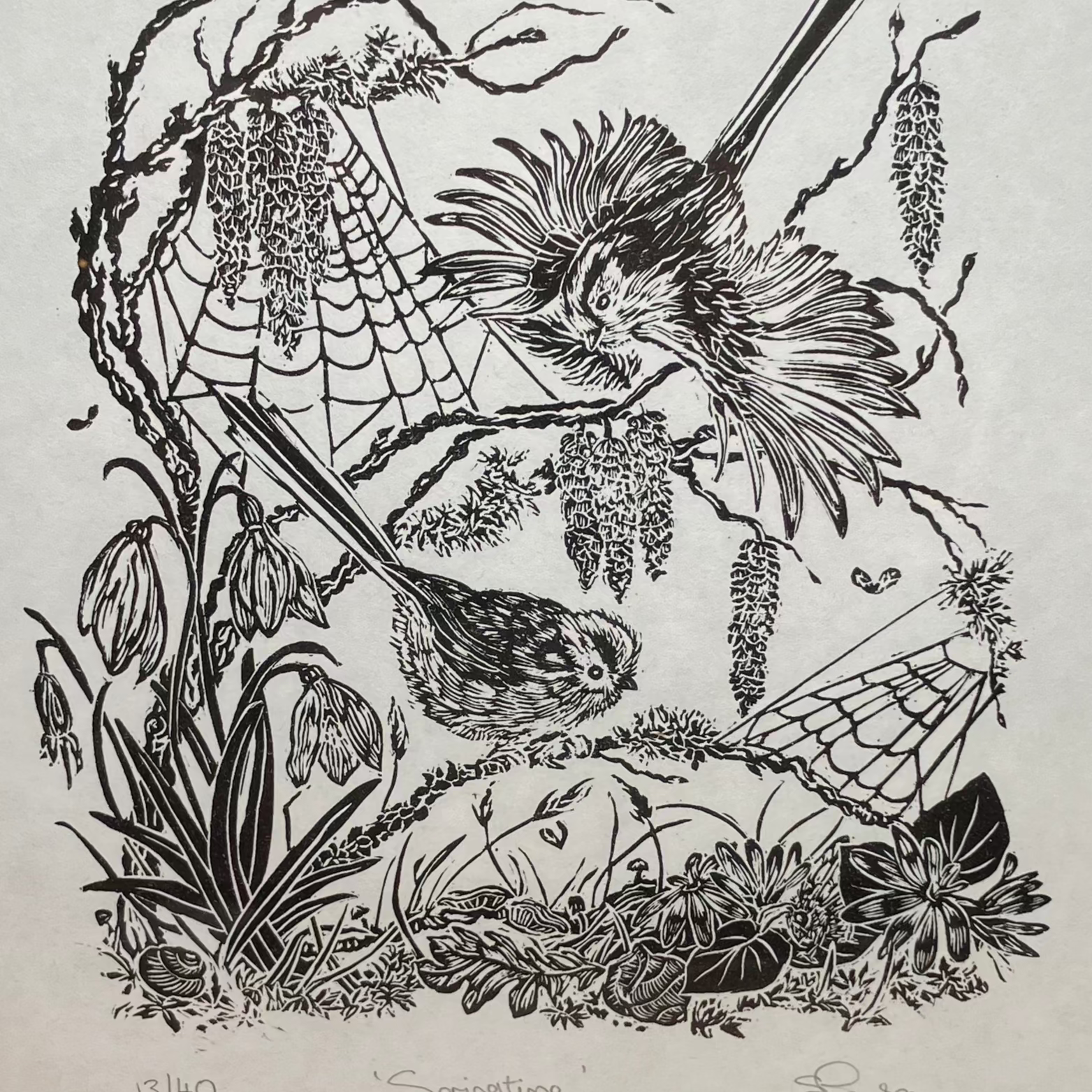 Limited edition Long Tail Coal Tits by local artist Sarah Pawson.