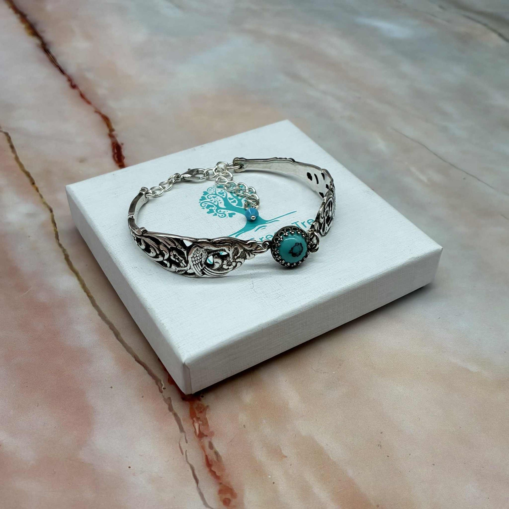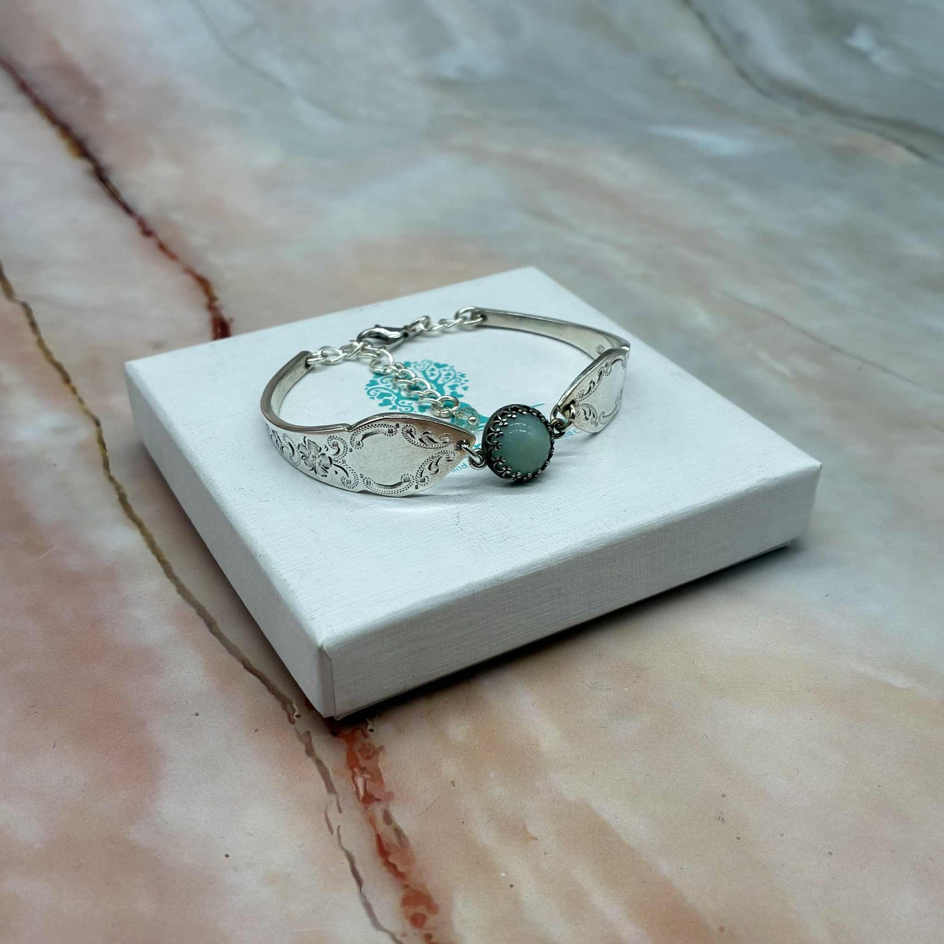 Adjustable Vintage Spoon Bracelets with Crystal Charms | Sterling Silver & Silver Plated | Various Designs