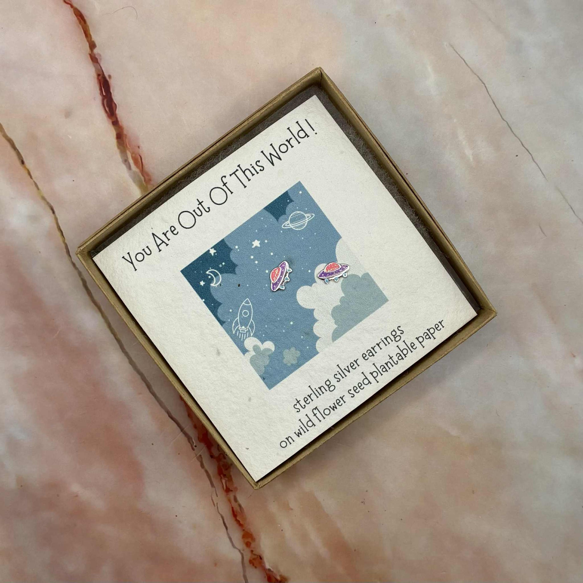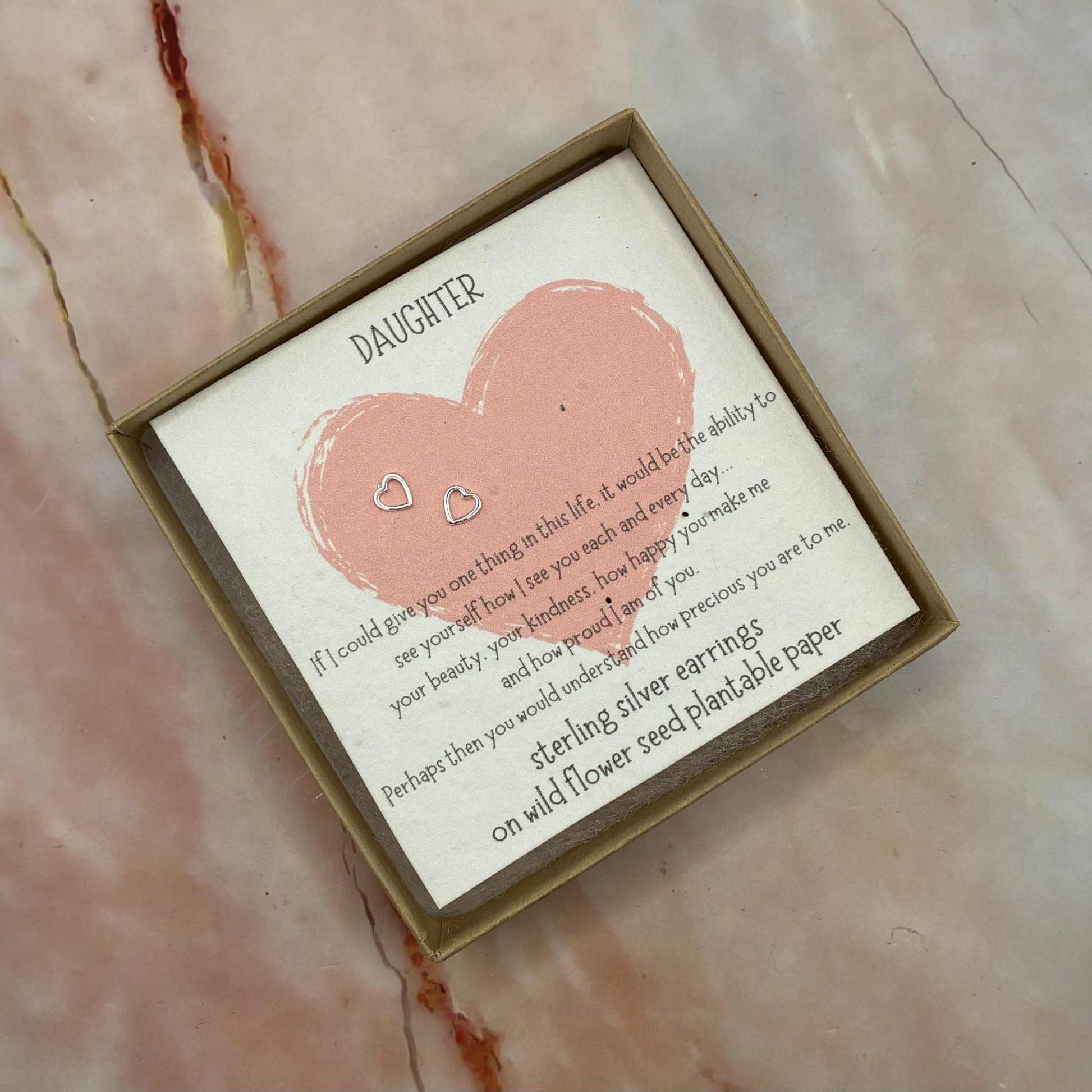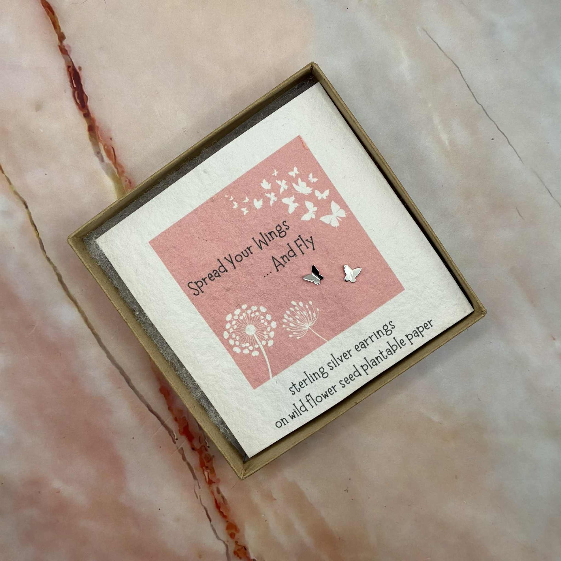 Stunning sterling silver stud earrings, complete with gift box and mounted on wild flower seed plantable paper.